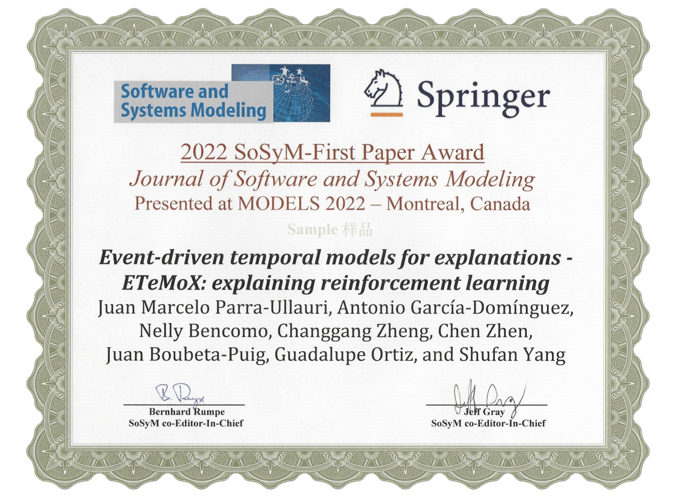 Award by Journal of Software and System Modeling, Springer, 2022