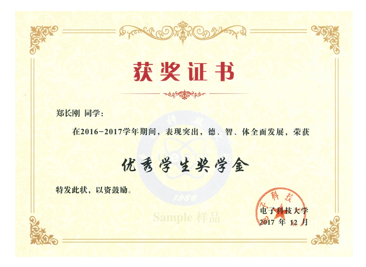 Award by University of Electronic Science and Technology of China, 2017