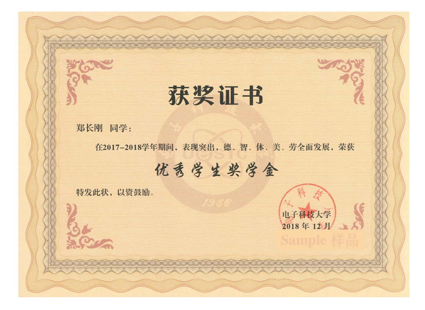 As the highest annual scholarship in UESTC, the First Class Honor Scholarship (Outstanding Student Scholarship) is awarded to the top 10% of UESTC students who demonstrate a high level of morality, intelligence, physical development, and with comprehensive quality and excellence.