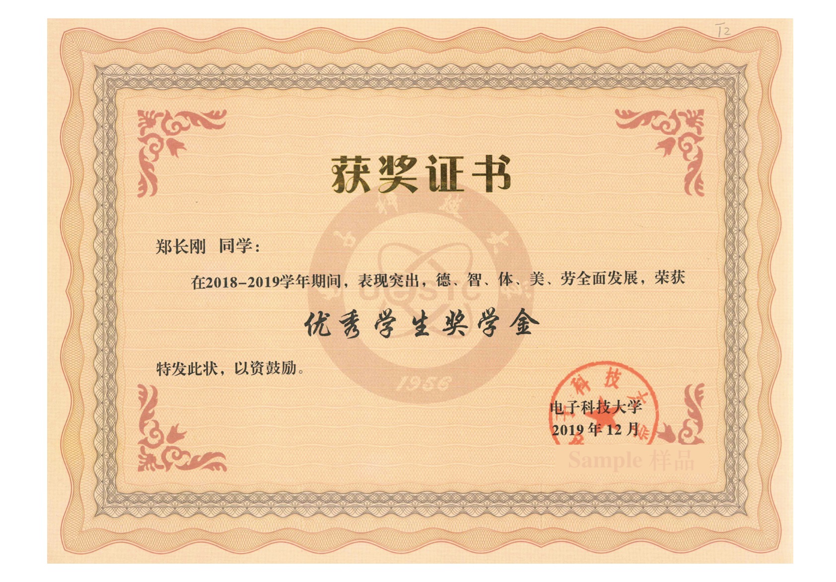 Award by University of Electronic Science and Technology of China, 2019
